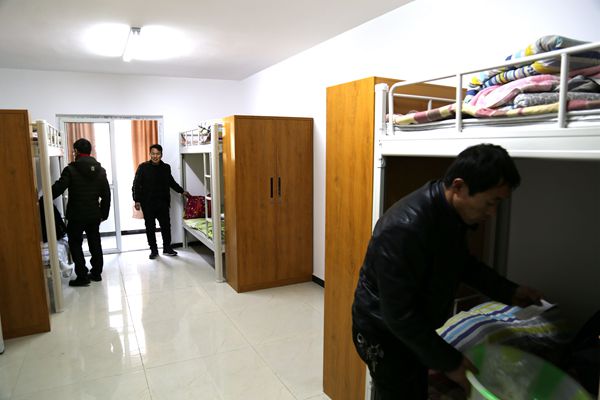 80名職工到達(dá)冶坪煤礦宿舍樓下后,有條不紊地拿著房門(mén)鑰匙進(jìn)入宿舍,收拾行李,擺放生活用品。