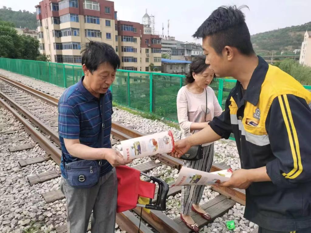 該分公司針對鐵路沿線居民出行特點(diǎn),組織人員深入重點(diǎn)路段與居民面對面宣傳安全常識,以通俗易懂的方式向居民講解翻越鐵路護(hù)欄、在鐵路上坐臥、玩耍、拋扔物品、擺放障礙物和拆卸破壞鐵路設(shè)施設(shè)備的行為帶來的危害,并現(xiàn)場發(fā)放安全宣傳手冊、傳單等宣傳資料300余份。