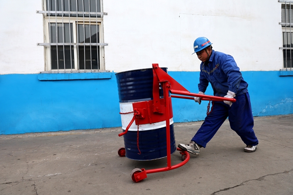 下石節(jié)礦:單人倒油桶裝置讓工作“油”刃有余