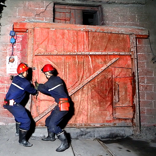 近日, 下石節(jié)煤礦在小改小革中,通防管理部的技術(shù)人員針對井下巷道壓力大、變形快,無法使用自動無壓風(fēng)門的實(shí)際,通過借鑒防盜門中“子母門”設(shè)計(jì)思路,經(jīng)過改革、創(chuàng)新,將風(fēng)門門扇設(shè)計(jì)為一大一小的子母形式,大小風(fēng)門均使用門軸固定在風(fēng)門門框上,并采用滑輪、鋼絲繩實(shí)現(xiàn)風(fēng)門連鎖,確保兩道正門或兩道反門不能同時(shí)打開,在局部區(qū)域試驗(yàn)后實(shí)踐效果良好,隨后在礦井主要通風(fēng)巷道全面推廣應(yīng)用。