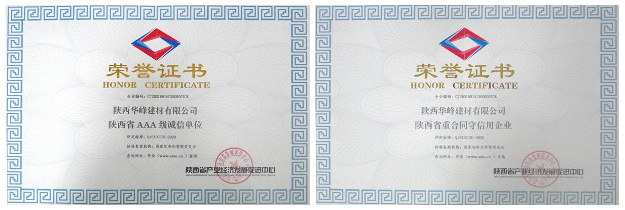 近日,從陜西省產(chǎn)業(yè)經(jīng)濟發(fā)展促進中心獲悉,華峰公司被評為2021年度陜西省“重合同守信用企業(yè)”及“陜西省AAA級誠信單位”。榮譽的獲得,是公司高度重視合同管理和社會誠信體系建設(shè)的結(jié)果,為公司今后持續(xù)健康、快速發(fā)展提供了更加有力的信譽保障。