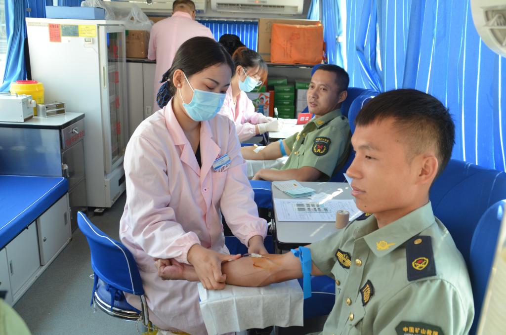 獻(xiàn)血現(xiàn)場(chǎng)到處流淌著感動(dòng)和溫暖的氣息。獻(xiàn)血者有序填寫(xiě)完獻(xiàn)血登記表后,在醫(yī)護(hù)人員的指導(dǎo)下,完成了填寫(xiě)獻(xiàn)血單、測(cè)量血壓、化驗(yàn)血樣、確定血型等醫(yī)務(wù)程序,依次進(jìn)行了獻(xiàn)血?!奥?tīng)說(shuō)今天有獻(xiàn)血活動(dòng),這幾天特別注意休息,能夠用自己的努力幫助有需要的人,心里很高興?!逼渲幸幻茸o(hù)指戰(zhàn)員說(shuō)。一名隊(duì)員一邊擼起袖子獻(xiàn)血,還一邊高興地說(shuō)“適當(dāng)獻(xiàn)血無(wú)礙訓(xùn)練和工作生活,有益身心健康。”還有一兩名年紀(jì)稍長(zhǎng)的指戰(zhàn)員一直堅(jiān)持獻(xiàn)血,目前個(gè)人累計(jì)獻(xiàn)血已有6000毫升。一些人員在化驗(yàn)完血樣后因?yàn)樘厥庠驘o(wú)法獻(xiàn)血,只能遺憾地離開(kāi),他們說(shuō)“如果下次有機(jī)會(huì),一定還要獻(xiàn)血?!笨粗磺粺嵫斔瓦M(jìn)儲(chǔ)血袋,大家紛紛拿著自己的獻(xiàn)血證自豪地離開(kāi)了現(xiàn)場(chǎng)。