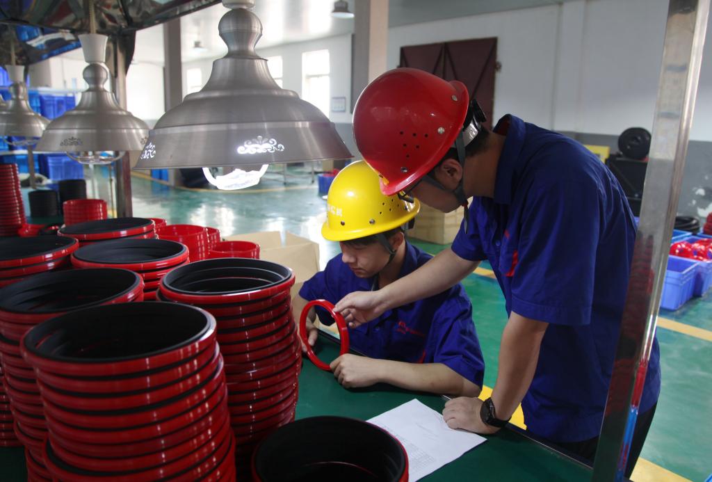 在密封生產(chǎn)車間,師父小賈正在和他的徒弟小王一起檢驗(yàn)密封圈,以保證產(chǎn)品質(zhì)量出廠達(dá)標(biāo)。小王說:“雖然我?guī)煾钢槐任掖罅藥讱q,但他的工作經(jīng)驗(yàn)很豐富,他總是很耐心的解答我的每一個(gè)問題,在這里多多感謝師父,讓我了解到在生產(chǎn)車間工作崗位的操作流程,每一個(gè)細(xì)節(jié)都至關(guān)重要。接下來的工作中,我要認(rèn)真工作,細(xì)心謹(jǐn)慎完成每一項(xiàng)任務(wù),不斷提高專業(yè)技能”。
