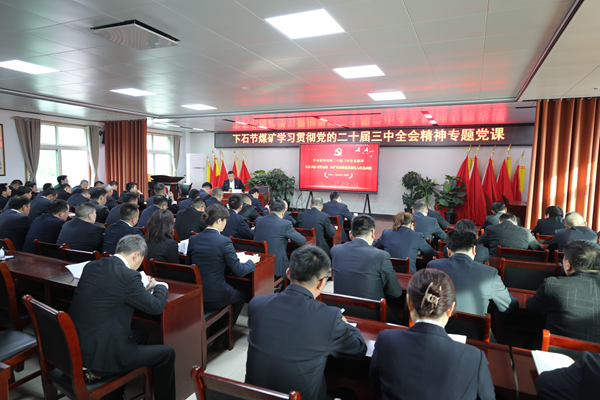 為深入學(xué)習(xí)貫徹黨的二十屆三中全會精神,下石節(jié)礦嚴格按照集團公司、礦業(yè)公司安排部署,組織黨員干部開展學(xué)習(xí)貫徹黨的二十屆三中全會精神專題黨課,理論武裝頭腦,指導(dǎo)工作實踐,激發(fā)奮進動能,助推礦井安全高質(zhì)量發(fā)展。