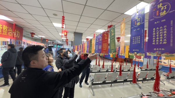 燈謎內容豐富多樣,有弘揚傳統(tǒng)文化的詩詞典故、名人軼事,有貼近生活的民俗風情、生活竅門,還有安全生產(chǎn)法規(guī)條例,謎題設置既具趣味性又能“漲知識”。職工穿梭于燈謎之間,有人認真琢磨眉頭緊鎖,有人和身邊的同事熱烈討論,你一言我一語,有人恍然大悟“身穿紅衣、常年哨放……這就是滅火器啊”“從低到高,由濃到淡,忽左忽右,跟著風走,這不就是‘煙’嗎”。