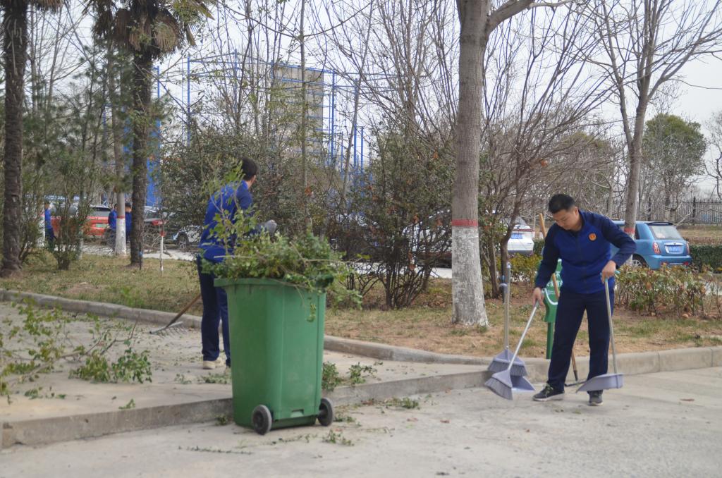 活動中,大隊全體干部職工積極參與,分工明確,配合默契,干勁十足。各部門按照劃分的責(zé)任區(qū)域,對綠化帶內(nèi)的樹木、灌木進行了修剪整形,對草坪中的雜草、枯枝、雜物進行了徹底清理。