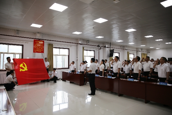 會(huì)上,該礦全體黨員莊重地面向黨旗,高舉右拳,重溫入黨誓詞,字字千鈞,激蕩著每一位黨員的初心與使命,喚醒了內(nèi)心深處的責(zé)任與擔(dān)當(dāng)。