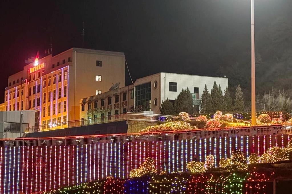 主干道上,大紅燈籠沿?zé)魲U整齊懸掛,在陽(yáng)光映照下格外喜慶醒目。1號(hào)公寓樓前,“凝心聚力譜新篇 游園喜樂(lè)賀新春”的拱門大氣莊重;職工餐廳門口,馬年卡通造型生動(dòng)可愛(ài),玻璃門內(nèi)新春裝飾錯(cuò)落有致,“馬年大吉”的溫馨布置,讓職工處處感受到家的溫暖。