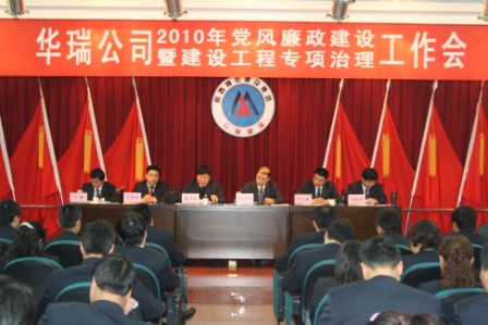 3月29日下午,陜西煤業(yè)化工建設(shè)集團(tuán)華瑞公司2010年黨風(fēng)廉政建設(shè)暨建設(shè)工程專項(xiàng)治理工作會(huì)議在四樓會(huì)議室召開,近80名黨員干部及管理人員參加了會(huì)議。會(huì)議由黨委委員、總工程師周海珍主持。