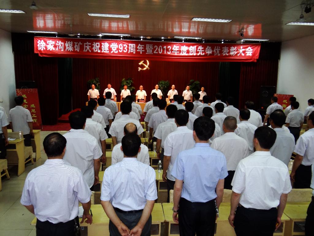 在中國共產(chǎn)黨建黨93周年之際,6月30日上午,徐家溝礦召開慶祝建黨93周年暨2013年度創(chuàng)先爭優(yōu)表彰大會,該礦副總以上領(lǐng)導(dǎo)、機關(guān)科室負責(zé)人、各黨支部書記、優(yōu)秀共產(chǎn)黨員共計100余人參加會議。會議由該礦黨委副書記、紀委書記王曉鋒主持。