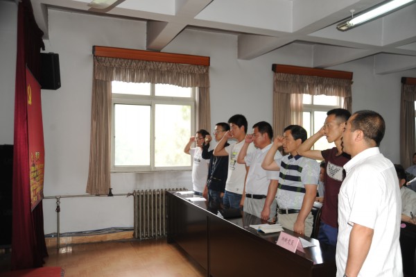 大會在雄壯有力的《國歌》聲中正式開始。會議首先由6名納新黨員面對黨旗進行入黨宣誓。
