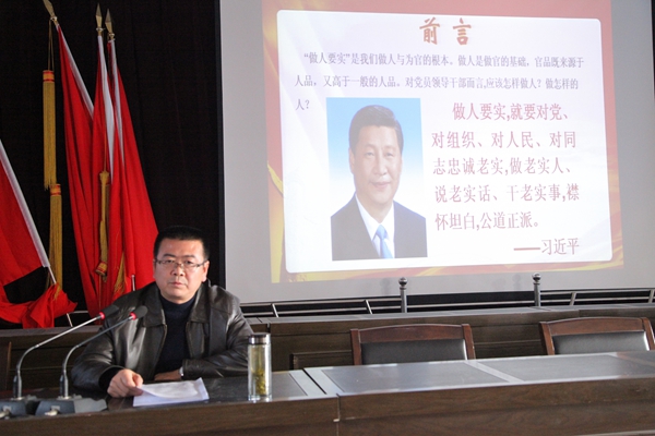 1月6日下午,金華山礦黨委副書記何剛在該礦機關四樓會議室為全礦干部職工上“三嚴三實”專題教育黨課,全礦副科級以上黨員領導干部,機關全體工作人員140多人共同接受了“三嚴三實”教育。