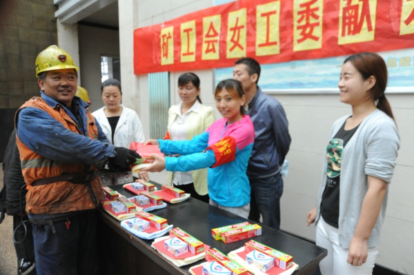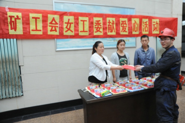 連日來,陳家山礦工會、安培中心聯(lián)合組織女工及家屬協(xié)管員在井口開展獻愛心活動。