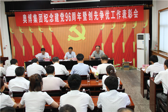 6月26日,奧博集團(tuán)召開紀(jì)念建黨96周年暨創(chuàng)先爭優(yōu)工作表彰會,奧博集團(tuán)和各成員企業(yè)黨政領(lǐng)導(dǎo)、欣塑公司黨支部、多經(jīng)公司黨支部、優(yōu)秀黨員代表、新黨員代表50余人參加了會議。