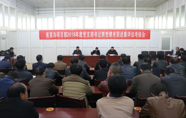 3月26日上午,崔家溝項目部在工業(yè)廣場培訓(xùn)室召開黨支部書記抓黨建述職述廉評議考核會,對2018年度各黨支部書記履行黨建工作主體責(zé)任情況進(jìn)行評議考核。該項目部黨委書記、黨群部工作人員、各黨支部書記及黨員代表共計90余人參加了會議。