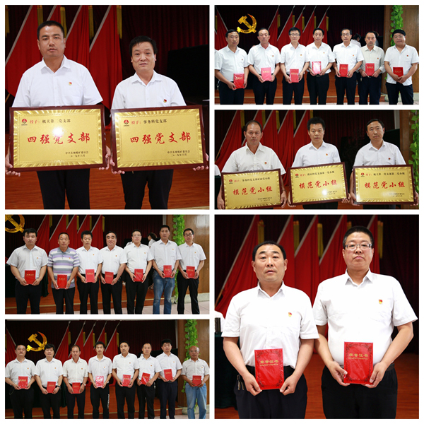 會議宣讀了《關(guān)于表彰2017—2018年度創(chuàng)先爭優(yōu)活動先進集體和先進個人的決定》,對2個“四強黨支部”、3個“模范黨小組”以及優(yōu)秀黨務(wù)工作者、“四優(yōu)共產(chǎn)黨員”、學(xué)習(xí)強國標兵、應(yīng)知必會學(xué)習(xí)先進個人等26名先進個人進行了表彰獎勵。同時,新老黨員面對黨旗進行了莊嚴宣誓。