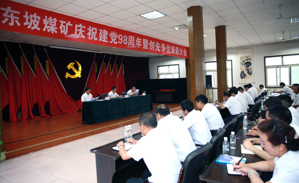 6月27日上午,東坡煤礦召開了慶祝建黨98周年暨創(chuàng)先爭優(yōu)表彰大會,總結(jié)兩年來的黨建工作成績,安排部署下一階段的工作任務(wù),表彰在創(chuàng)先爭優(yōu)活動中涌現(xiàn)出的先進集體和先進個人。該礦黨政領(lǐng)導(dǎo)、受表彰的先進集體、先進個人和全體黨員共計50余人參加會議。