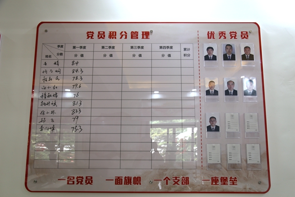 黨員積分以黨支部為單位按月度考核,月季度公示、年度評(píng)估具體組織實(shí)施,實(shí)行“一人一檔,跟蹤管理”。各黨支部制定黨員計(jì)分管理公示欄,每月公開黨員積分管理情況,并接受黨員查詢,讓黨員全過(guò)程參與積分管理,清楚個(gè)人積分情況、積分位次以及考核評(píng)議結(jié)果,同時(shí),采取專干記錄、支委初審、大會(huì)決定、支部公示、上級(jí)備案等5個(gè)層級(jí),切實(shí)保障黨員的知情權(quán)、參與權(quán)和監(jiān)督權(quán),確保積分制管理工作公開公平公正。