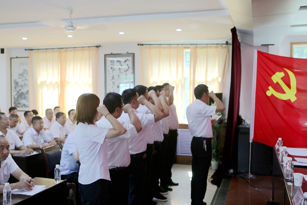 會(huì)上,納新黨員在鮮紅的黨旗下進(jìn)行了莊嚴(yán)的宣誓。