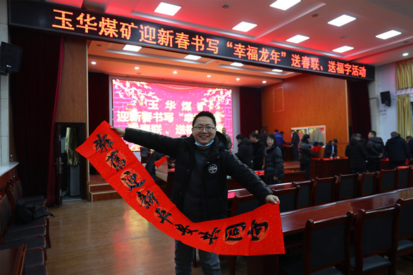 2月1日,臘月二十二,伴隨著句句祝福,玉華礦職工活動中心里翰墨飄香、熱鬧非常,一場迎新春書寫“幸福龍年”送春聯(lián)送福字主題活動正在進(jìn)行。