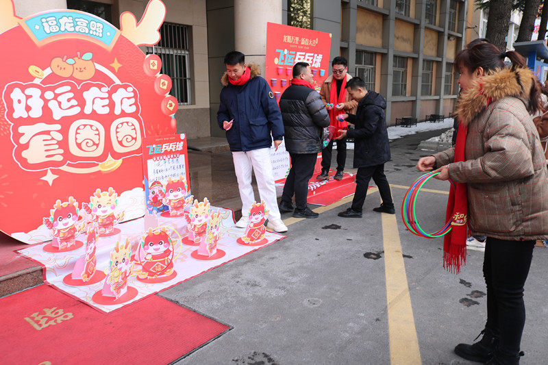 活動設(shè)有龍年飛運乒乓球、龍年年年有余(魚)、龍年套圈圈、好運投壺、飛盤九宮格(團隊游戲)、驚喜抽盲盒游戲六項活動,在主持人宣讀完比賽規(guī)則后,所有在場人員都躍躍欲試,沉浸在節(jié)日歡樂的氛圍中,經(jīng)過激烈的比拼,該公司職工史瑋獲得比賽第一名。趣味活動在職工們驚喜抽盲盒的歡呼聲和掌聲中圓滿結(jié)束。