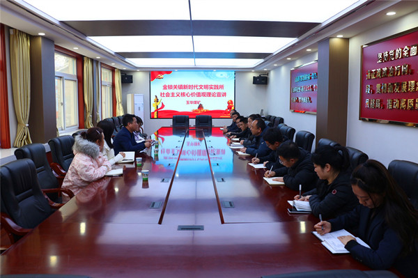 宣講中,金鎖關(guān)鎮(zhèn)副鎮(zhèn)長姚重軍從深入開展社會主義核心價值觀宣傳教育,堅持不懈用社會主義核心價值觀鑄魂育人,把學(xué)習(xí)教育踐行融入礦井建設(shè)發(fā)展與職工工作生活等方面對開展新時代文明實踐活動進(jìn)行了形象生動的系統(tǒng)宣講,進(jìn)一步加深廣大職工對社會主義核心價值觀涵義的理解,同時引導(dǎo)職工爭做弘揚社會主義核心價值觀的踐行者、傳播者和推動者。