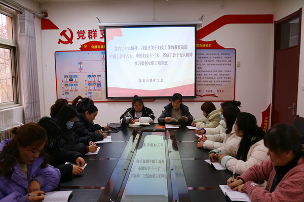 此次培訓,主要對的黨的二十大精神、中國工會十八大、中國婦女十三大、省總公會十五大精神進行學習貫徹。隨后,女工圍繞此次培訓所感所悟各抒己見,依次發(fā)言,通過此次對女工的專項‘充電’,大家紛紛表示,在工作崗位上積極發(fā)揮引領巾幗示范作用,不會辜負領導的期望,做到學有所思、學有所悟、學有所用,全力體現新時代的新氣象、新作為,為礦井安全平穩(wěn)發(fā)展做出新貢獻。