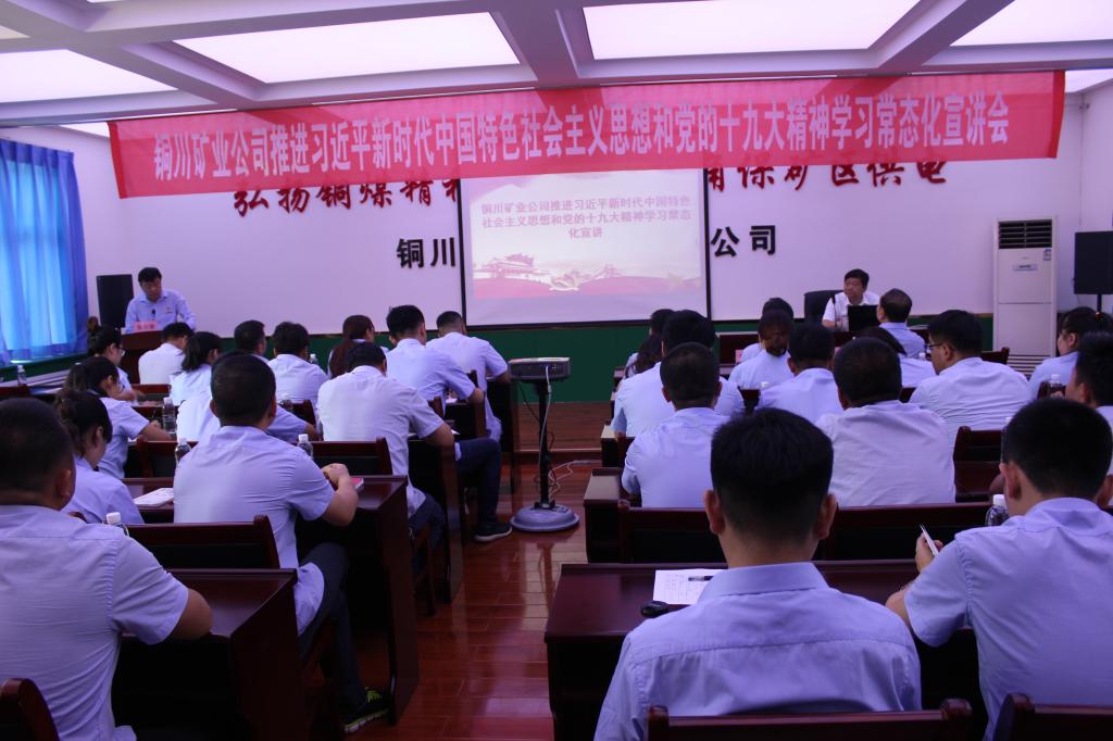 本次宣講由銅川礦業(yè)公司宣講團(tuán)成員——下石節(jié)煤礦紀(jì)委書記李俊輝同志擔(dān)任,他以《高舉習(xí)近平新時(shí)代中國(guó)特色社會(huì)主義思想偉大旗幟 立足新時(shí)代 邁步新征程 開創(chuàng)“煤”好未來》為主題,從深刻領(lǐng)會(huì)習(xí)近平新時(shí)代中國(guó)特色社會(huì)主義思想和黨的十九大精神的時(shí)代意義,習(xí)總書記在全國(guó)國(guó)有企業(yè)黨的建設(shè)工作會(huì)議和全國(guó)宣傳思想工作會(huì)議上的重要講話精神解讀,以永遠(yuǎn)在路上的執(zhí)著推動(dòng)全面從嚴(yán)治黨向縱深發(fā)展三個(gè)方面為大家進(jìn)行了詳細(xì)而又精彩的講解,使廣大黨員干部,更加深刻地領(lǐng)會(huì)了習(xí)近平新時(shí)代中國(guó)特色社會(huì)主義思想的歷史地位和豐富內(nèi)涵,進(jìn)一步樹立了新時(shí)代需要新思想指引,新征程需要新理論領(lǐng)航的新思想理念。