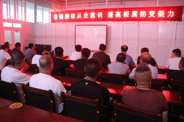 為進一步增強黨員干部廉潔從業(yè)意識,提高拒腐防變能力,7月23日,崔家溝項目部組織各部室負責人、基層各單位黨支部書記、辦事員、材料員共40余人在培訓室觀看了廉潔警示教育片《貪與悔》。