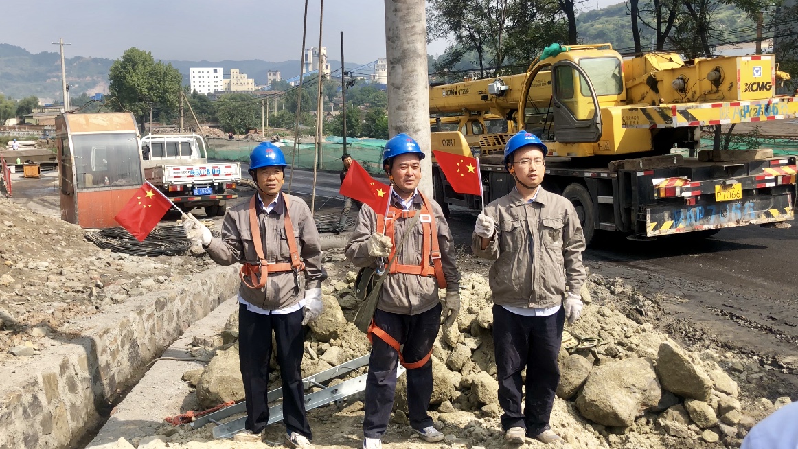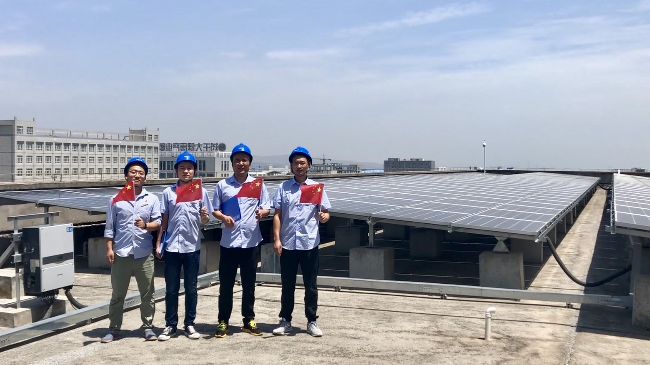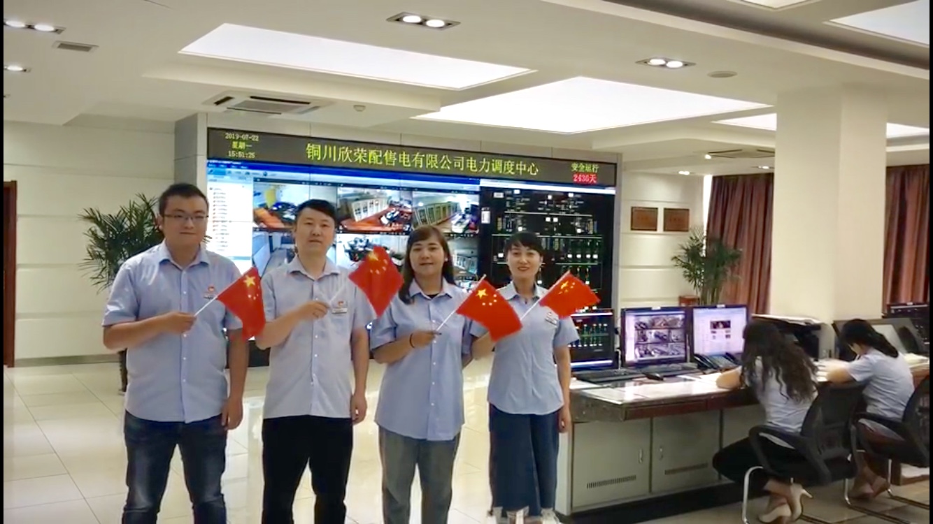 “我和我的祖國,一刻也不能分割,無論我走到哪里,都留下一首贊歌”一首《我和我的祖國》在欣榮配售電公司的辦公樓前、玉華35kv變電站、安子溝35kv變電站、新區(qū)6MWp分布式光伏發(fā)電站、電力調(diào)度中心、玉華施工現(xiàn)場響徹。