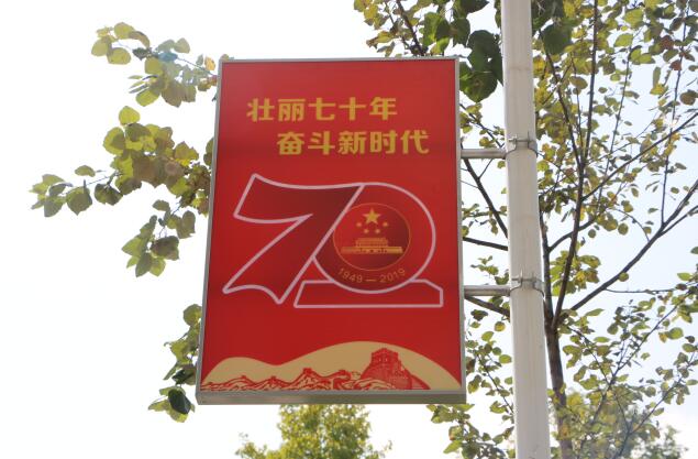 為營造濃厚的國慶氛圍,該項目部提前著手、精心策劃,按照“簡約大氣、熱烈喜慶”的原則,在機關(guān)辦公樓前、區(qū)隊聯(lián)合辦公樓、副絞提升機房、職工生活區(qū)和“兩堂一舍”等區(qū)域,懸掛了以“熱烈慶祝中華人民共和國成立70周年”為內(nèi)容的橫幅、以五星紅旗和70周年為內(nèi)容的燈箱、五星紅旗和燈籠,積極營造出慶祝新中國成立70周年的濃厚節(jié)日氛圍。