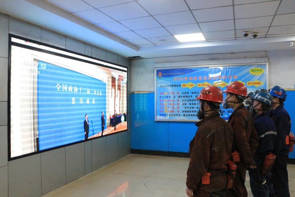 全國“兩會”前期,為認(rèn)真做好全礦黨員干部職工收看全國“兩會”實況,及時傳達(dá)“兩會”精神,該礦黨政高度重視,提早著手、周密組織,設(shè)立了室外大屏、候罐大廳電子屏、區(qū)隊學(xué)習(xí)室和職工活動中心4個集中收看點,保證全礦干部職工能第一時間觀看到 “兩會”盛況,了解到“兩會”信息,在礦區(qū)營造出濃厚的學(xué)習(xí)觀看全國“兩會”熱潮。
