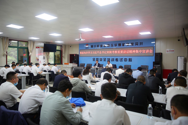 6月17日,柴家溝井舉行習近平總書記考察陜西重要講話集中學習及交流研討活動,該礦黨委負責人強云進行宣講,各副總師、各黨支部書記、各部門區(qū)隊負責人聆聽了宣講。