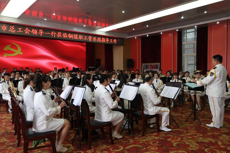 在銅煤職工管樂團(tuán)訓(xùn)練廳,一行人觀看了職工演奏的《唱支山歌給黨聽》《祖國不會(huì)忘記你》《桂河大橋進(jìn)行曲》等曲目。銅川市總工會(huì)技術(shù)指導(dǎo)王金生老師對(duì)銅煤職工管樂團(tuán)的精彩演出給予充分的好評(píng),并助力把銅煤職工團(tuán)樂團(tuán)推向更高的平臺(tái)。