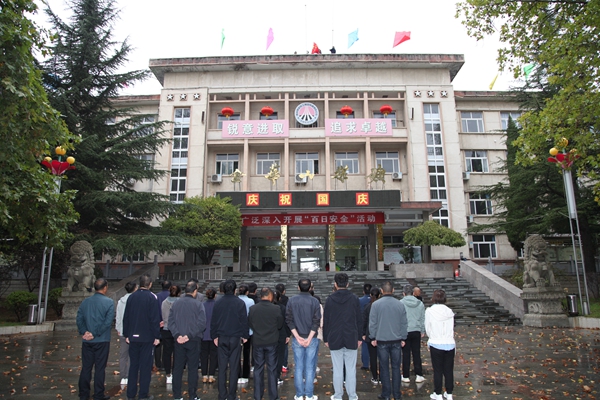 10月1日一大早,金華山礦領(lǐng)導和機關(guān)科室留守人員齊聚在該礦辦公大院內(nèi)舉行“慶國慶”升國旗儀式,共同慶祝中華人民共和國成立71周年。