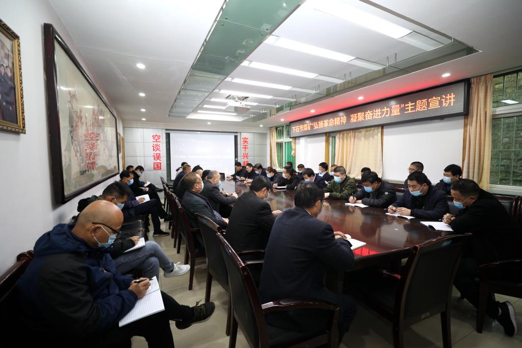 為進一步提高黨員干部思想政治素質(zhì),弘揚革命精神,推動黨史學(xué)習(xí)教育走深走實走心。近日,下石節(jié)煤礦舉辦“弘揚革命精神 凝聚奮進力量”主題宣講活動,進一步激發(fā)廣大黨員干部擔(dān)當(dāng)作為、干事創(chuàng)業(yè)的信心和決心。該礦領(lǐng)導(dǎo)、相關(guān)科室科部長、基層單位主要領(lǐng)導(dǎo)40余人參加了此次宣講會。
