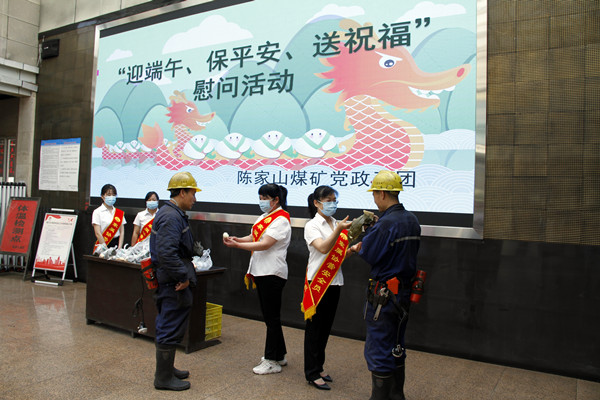端午節(jié)當日,陳家山煤礦在井口開展了以“迎端午 保平安 送祝?!睘橹黝}的端午節(jié)慰問活動,為職工送上了該礦黨政真切的關懷和深情的囑托,進一步推動了“安全生產月”活動的深入開展。