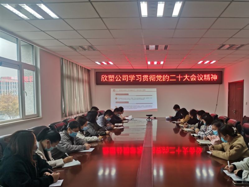 10月31日,欣塑公司召開專題會(huì)議學(xué)習(xí)貫徹黨的二十大精神,動(dòng)員廣大干部職工以學(xué)習(xí)貫徹落實(shí)黨的二十大精神為抓手,立足崗位、擔(dān)當(dāng)作為,為企業(yè)轉(zhuǎn)型升級高質(zhì)量發(fā)展貢獻(xiàn)力量。