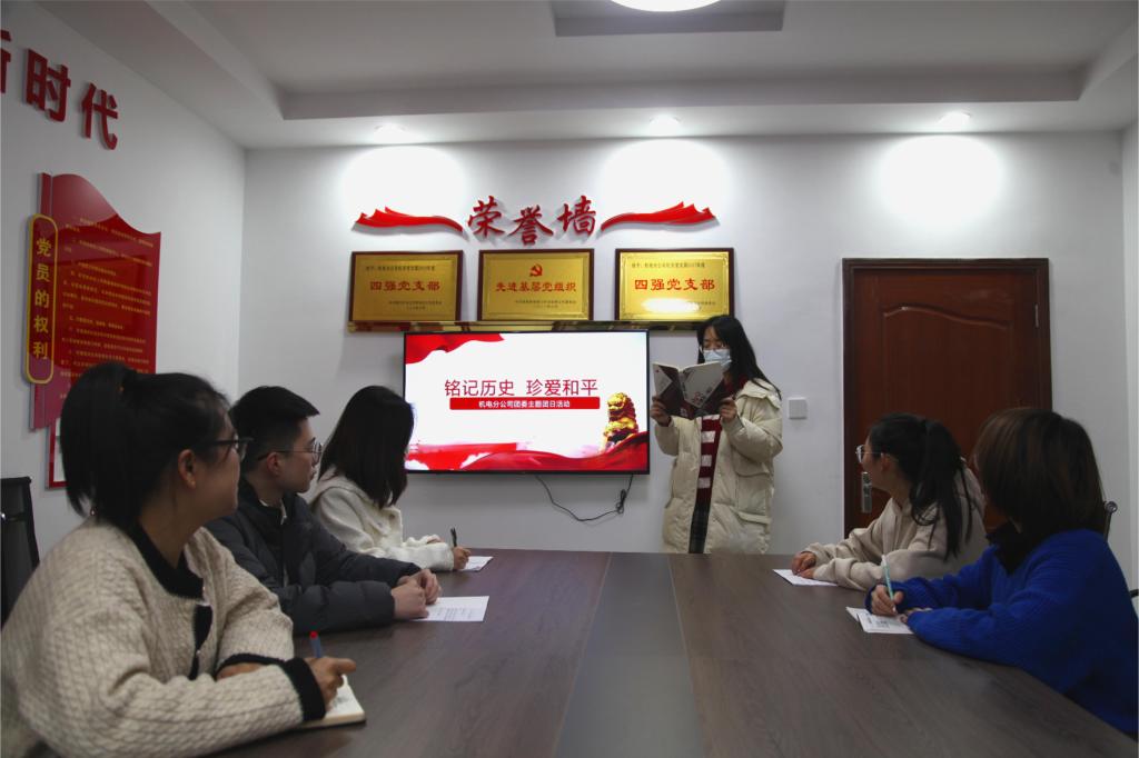 近日,機(jī)電分公司團(tuán)委開展“銘記歷史 珍愛和平”為主題的團(tuán)日活動(dòng),旨在讓青年團(tuán)員深入了解歷史,感受祖國(guó)的偉大和人民的堅(jiān)韌。