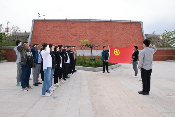 五四期間,該礦22名團員青年在軍臺嶺戰(zhàn)斗紀念碑前,深切緬懷革命先烈,面對團旗重溫入團誓詞,高呼“強國有我”的時代強音響徹銅川市軍臺嶺戰(zhàn)役遺址上空。