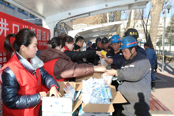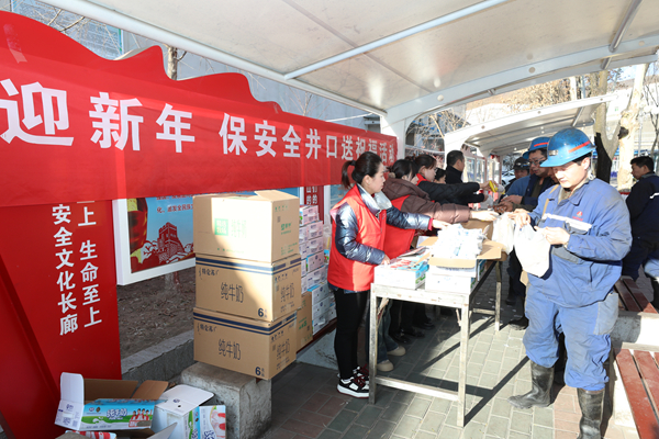 在該礦井口“慶新年、送祝福、囑安全”慰問活動現(xiàn)場,身穿紅色馬甲的女工、安全協(xié)管員為上班的職工師傅們送上第一份安全祝福,將純牛奶、面包、雞蛋等慰問品遞到每一位職工手中,深情地叮囑礦工兄弟們,時刻牢記安全為天思想,增強自?;ケB?lián)保能力,提升安全生產(chǎn)意識,以飽滿的精神和務實的行動投入安全生產(chǎn)工作工作當中,扎根煤海再立新功。