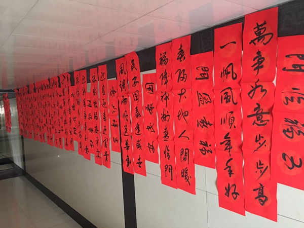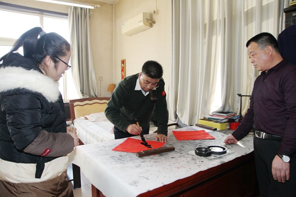 大寒過后的金華山礦格外寒冷,滴水成冰。為了防止墨汁結(jié)冰,礦黨委書記武永發(fā)利用雙休日和晚上時(shí)間,為礦區(qū)職工家屬義務(wù)書寫春聯(lián)。武書記在自己休息室里擺開桌案,鋪上紅紙,筆走龍蛇、揮灑筆墨,前來討要春聯(lián)的職工家屬一邊等候,一邊欣賞武書記的書法作品。職工家屬有求必應(yīng),不少職工家屬看到身邊這位熟悉的礦黨委書記寫出了剛勁有力,飄逸瀟灑的好書法,一個(gè)個(gè)贊嘆好字好書法,一副副滿含吉祥祝福的春聯(lián)、一個(gè)個(gè)大紅的“?!弊旨钪V干部職工紅紅火火過大年,砥礪奮進(jìn)謀發(fā)展,也為年味十足金華山礦增添了一道靚麗的風(fēng)景線。