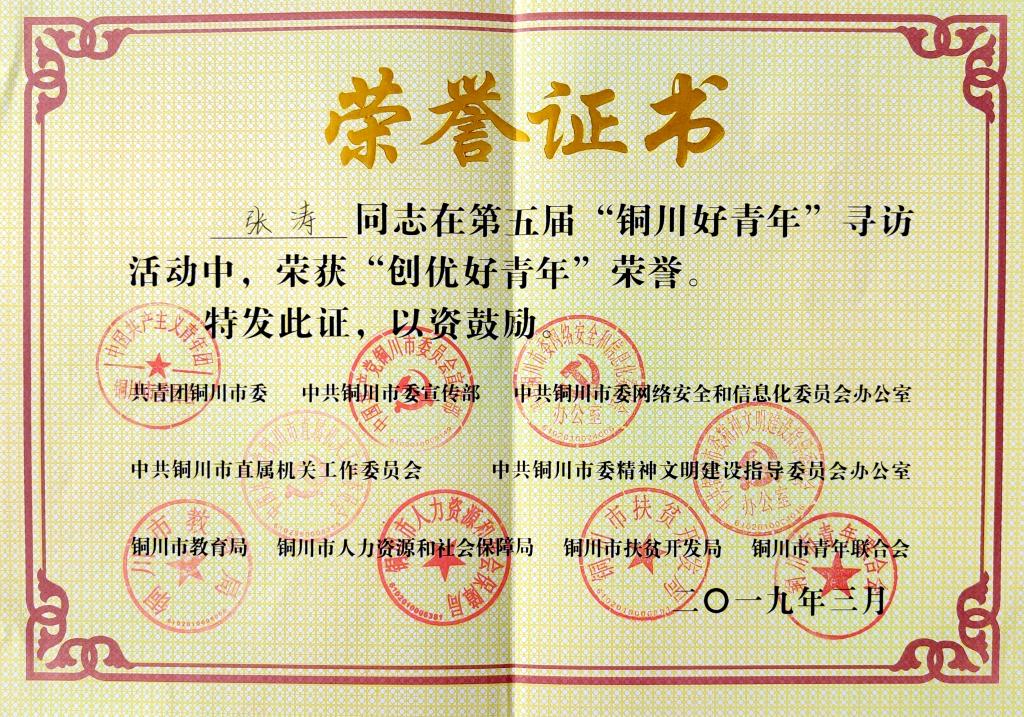 10月18日上午,團(tuán)市委在銅川職業(yè)技術(shù)學(xué)院舉辦的關(guān)于開展2019年銅川市“我與祖國(guó)共奮進(jìn)”青春故事匯暨第六屆“銅川好青年”尋訪活動(dòng)大會(huì)上,對(duì)第五屆“銅川好青年”獲得者進(jìn)行了表彰,公司青工張濤獲得銅川市“創(chuàng)優(yōu)好青年”殊榮。