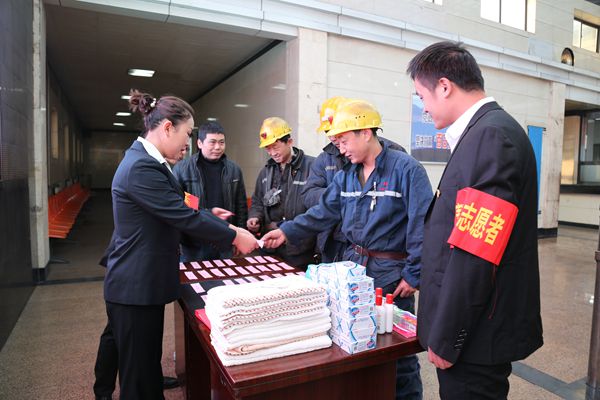 團(tuán)員青年不顧冬日寒冷,早早地來到了井口人車場,將活動需要的座椅擺放到位,一塊塊香皂、一條條毛巾、一瓶瓶洗發(fā)水等安全答題小禮品放置整齊。為不耽誤職工入井時間,一杯杯暖心的熱茶水也早已沏好,迎面撲來陣陣茉莉花茶的味道。
