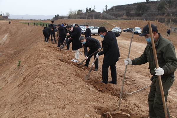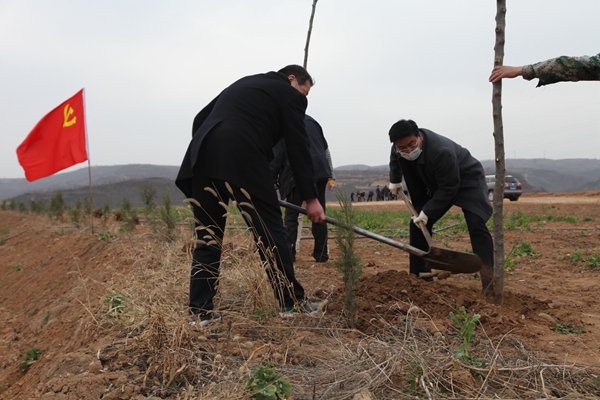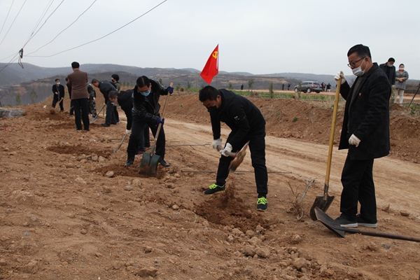 12日上午,有的同志從家里帶來鐵鍬、尖鎬等植樹工具,在該礦黨政組織下自駕車來到紅土矸山開展植樹活動(dòng)。在植樹現(xiàn)場,黨旗隨風(fēng)飄揚(yáng),植樹人員干勁十足。該礦黨政領(lǐng)導(dǎo)武永發(fā)、高金宇帶領(lǐng)大家挖坑栽樹。大家團(tuán)結(jié)協(xié)作,有的揮鎬挖坑,有的培土,有的將一棵棵樹苗認(rèn)真的栽入坑中,扶正、填土、壓實(shí)、澆水植樹環(huán)節(jié)一絲不茍,認(rèn)真把握好每個(gè)植樹細(xì)節(jié),確保種植一棵、成活一棵、美化一片。