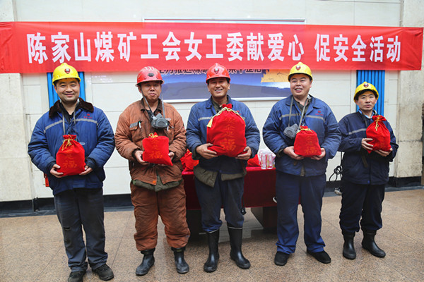 6月11日下午,陳家山煤礦工會女工委在井口開展“獻(xiàn)愛心 促安全”活動,為一線職工們送上精美的安全福袋和安全囑托。