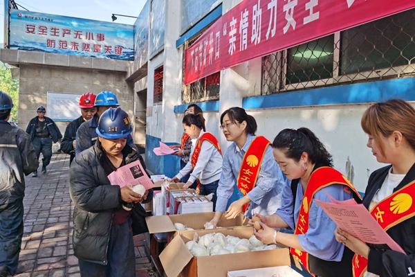 活動(dòng)期間,礦女工委組織部分女工小組長和一些家屬,通過印制分發(fā)煤礦安全小常識(shí),生活必備安全知識(shí)等宣傳資料,為入井職工準(zhǔn)備了礦泉水、雞蛋、食品等慰問品。同時(shí),女工協(xié)管員們還為上下井職工送上一句句溫馨的祝福語,“工作中一定要按章作業(yè)、你們的妻兒在等你平安回家”“安全工作就是對(duì)家里最好的回報(bào)”“你安全的工作,我們?cè)诩也拍芊判摹薄宦暵曎N心問候,一句句深情的叮囑,讓廣大職工感受到了家的溫暖和愛意,也在每個(gè)即將入井步入工作崗位的職工心中筑牢了安全第一道防線。