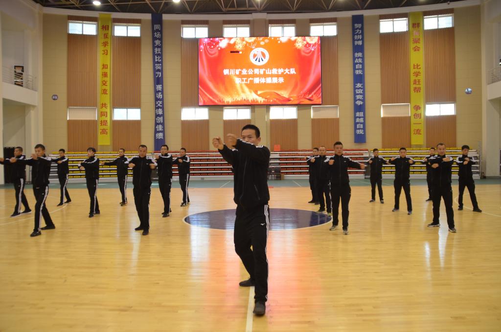 隨著運(yùn)動(dòng)員進(jìn)行曲的開始,各參賽隊(duì)伍以昂揚(yáng)的姿態(tài)、鏗鏘的步伐有序入場(chǎng)。救護(hù)大隊(duì)黨總支書記、工會(huì)主席張礦院作賽前講話,要求全體參賽人員要以最佳的精神狀態(tài)和面貌面對(duì)本次比賽,希望各參賽隊(duì)發(fā)揚(yáng)團(tuán)結(jié)拼搏的體育精神、展示團(tuán)隊(duì)風(fēng)貌,賽出風(fēng)格、賽出水平、賽出友誼。隨后,各參賽隊(duì)伍身著整齊劃一的服裝分別展示,同臺(tái)競(jìng)技,他們個(gè)個(gè)精神飽滿,意氣風(fēng)發(fā)。伴隨著“一二三四,五六七八……”廣播聲音的響起,各參賽隊(duì)伍伸展、擴(kuò)胸、體轉(zhuǎn)、體側(cè)、跳躍等動(dòng)作到位,姿勢(shì)正確,歡快有力,進(jìn)退場(chǎng)隊(duì)形變換新穎整齊,步調(diào)一致,節(jié)奏準(zhǔn)確,口號(hào)響亮,表現(xiàn)出激昂向上的精神面貌,贏得現(xiàn)場(chǎng)觀眾的陣陣掌聲。各隊(duì)伍比賽完成后,全體參賽人員集體展示了體操動(dòng)作。