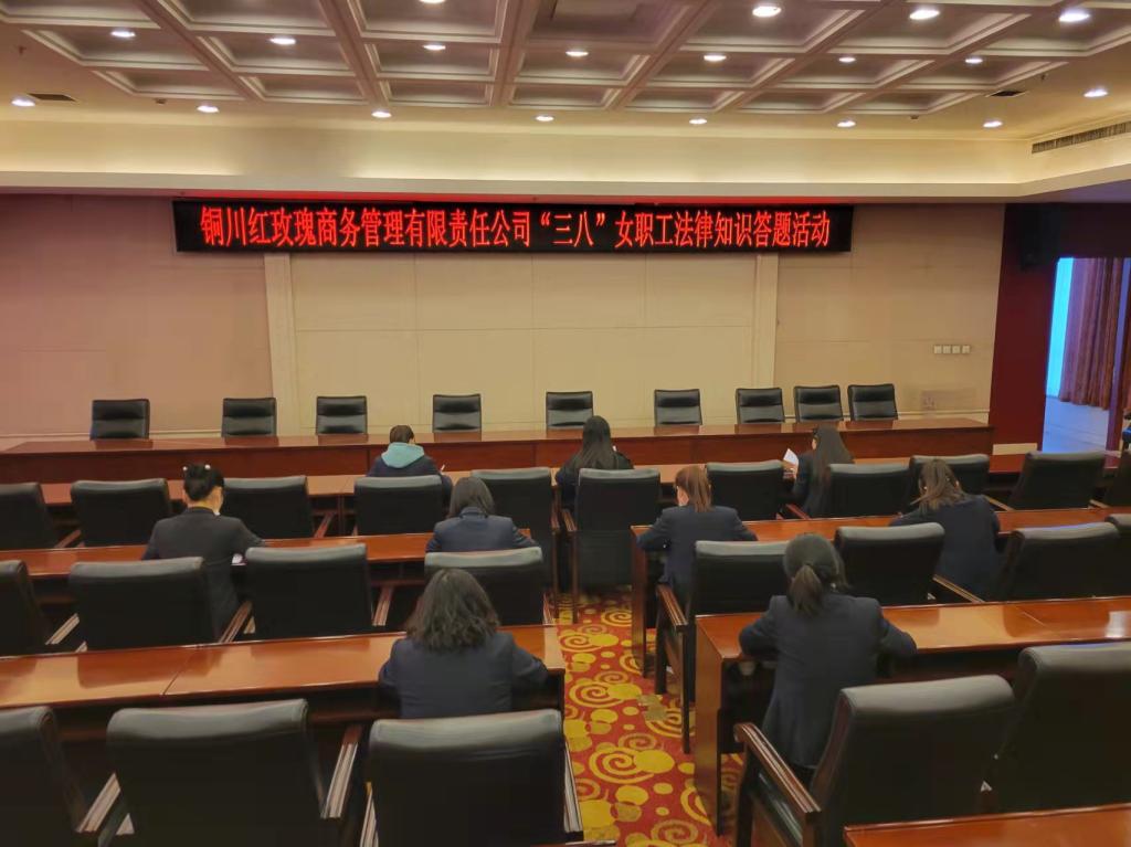 為深入學(xué)習(xí)貫徹習(xí)近平新時(shí)代中國(guó)特色社會(huì)主義思想,切實(shí)維護(hù)女職工合法權(quán)益, 3月7日,銅川紅玫瑰商務(wù)管理有限責(zé)任公司開(kāi)展了“凝聚巾幗情?建功新時(shí)代”答題活動(dòng)。