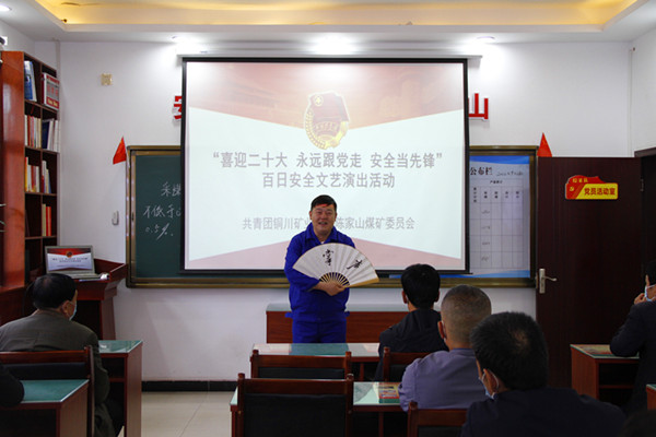 “喜迎二十大、奮戰(zhàn)四季度、全力保安全”百日安全生產(chǎn)行動期間,陳家山煤礦團委在礦黨政的大力支持和正確領(lǐng)導(dǎo)下,近日,精心組織青年志愿者深入基層區(qū)隊為礦工兄弟們送上了“私人訂制”的安全文藝節(jié)目,為礦井安全生產(chǎn)加油鼓勁。